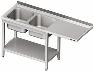 Stół ze zlewem dwukomorowym z lewej strony z półką i miejscem na lodówkę lub zmywarkę 2400x600x850 mm | STALGAST, 981046240