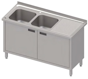 Stół ze zlewem dwukomorowym z prawej strony z szafką, 1300x600x850 mm | STALGAST, 984626130
