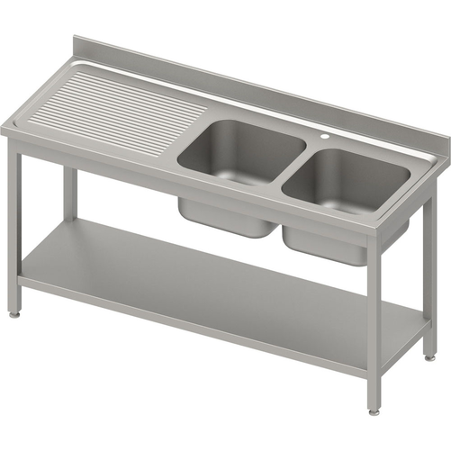 Stół ze zlewem dwukomorowym z prawej strony i półką, 1900x700x850 mm | STALGAST, 984597190