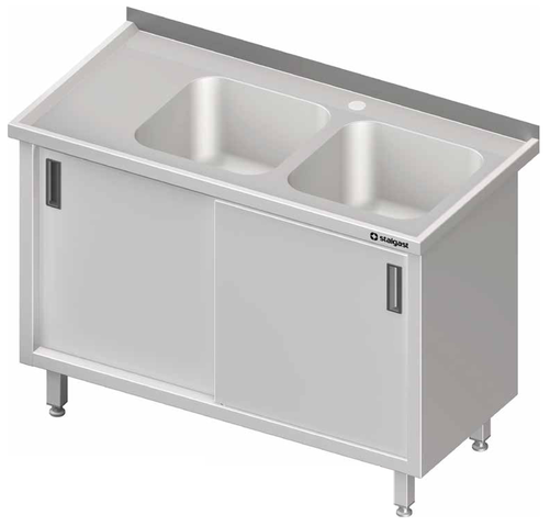 Stół ze zlewem dwukomorowym z prawej strony z drzwiami suwanymi 1100x600x850 mm | STALGAST, 980906110