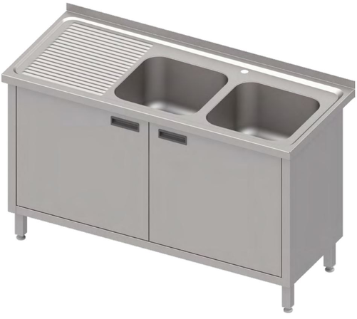 Stół ze zlewem dwukomorowym z prawej strony z szafką, 1400x700x850 mm | STALGAST, 983977140
