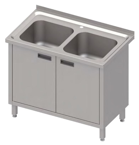Stół ze zlewem dwukomorowym z szafką, 1000x700x850 mm | STALGAST, 983967100