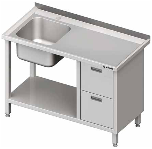 Stół ze zlewem jednokomorowym z lewej strony z blokiem dwóch szuflad i półką 1600x700x850 mm | STALGAST, 981007160