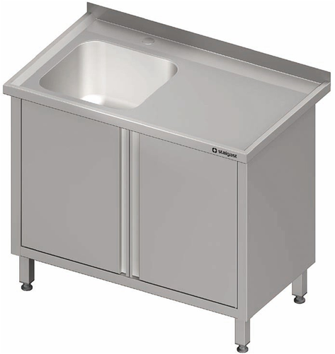 Stół ze zlewem jednokomorowym z lewej strony z drzwiami skrzydłowymi 900x600x850 mm | STALGAST, 980736090