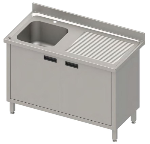 Stół ze zlewem jednokomorowym z lewej strony z szafką, 1400x700x850 mm | STALGAST, 984507140