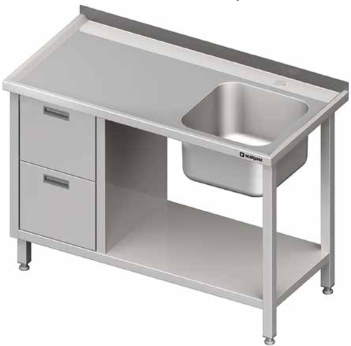 Stół ze zlewem jednokomorowym z prawej strony z blokiem dwóch szuflad i półką 1700x700x850 mm | STALGAST, 980997170