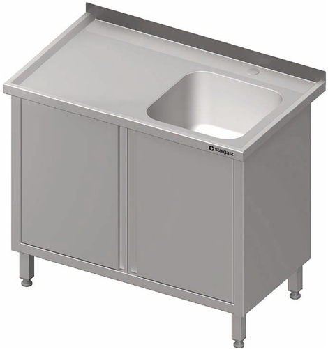 Stół ze zlewem jednokomorowym z prawej strony z drzwiami skrzydłowymi 1500x700x850 mm | STALGAST, 980727150