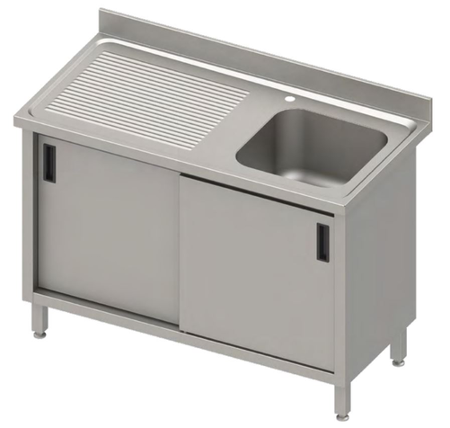 Stół ze zlewem jednokomorowym z prawej strony z szafką, 1700x600x850 mm | STALGAST, 984516170