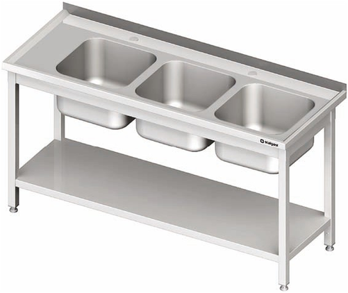 Stół ze zlewem trzykomorowym z półką 1900x600x850 mm | STALGAST, 981136190